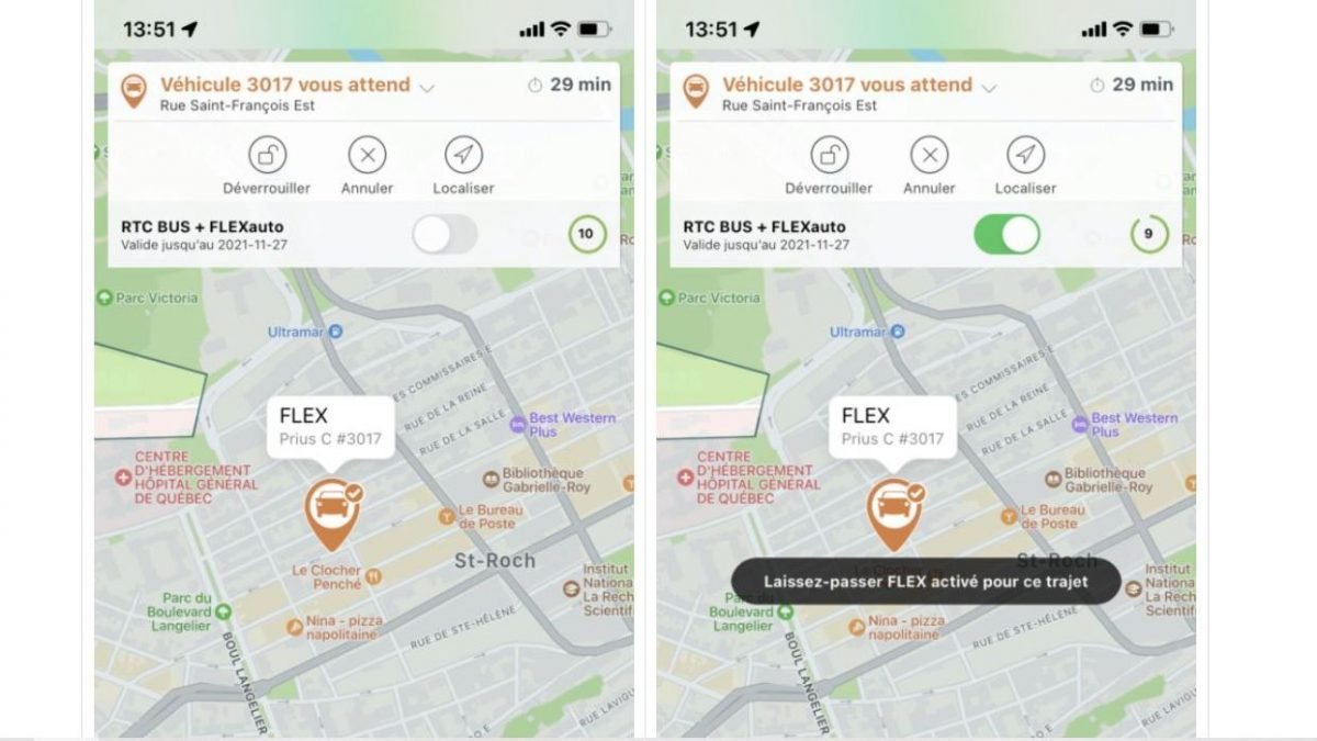 The package offers 10 FLEX trips, i.e. 10 trips from point A to point B, starting and ending in the Communauto FLEX service area, with a vehicle without reservation. The first 30 minutes of each trip are included in the package. Additional minutes will be billed.